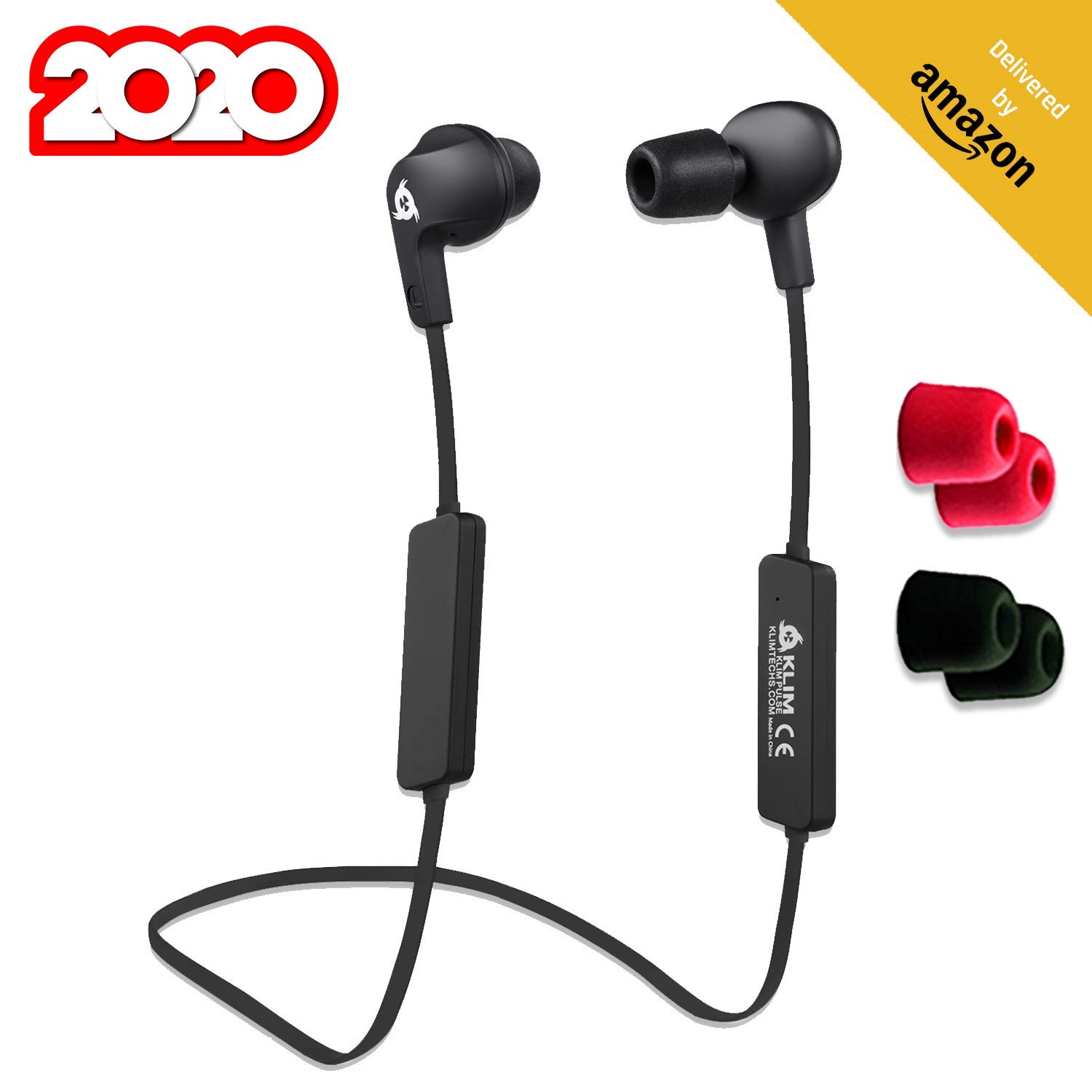 KLIM™ Pulse Écouteurs Bluetooth 4.1 - Version 2020 - Oreillettes sans Fil - Réduction Sonore - Parfait pour Sport, Musique, Appels, Gaming - Aimanté + Nouveaux Embouts à Mémoire de Forme Noir