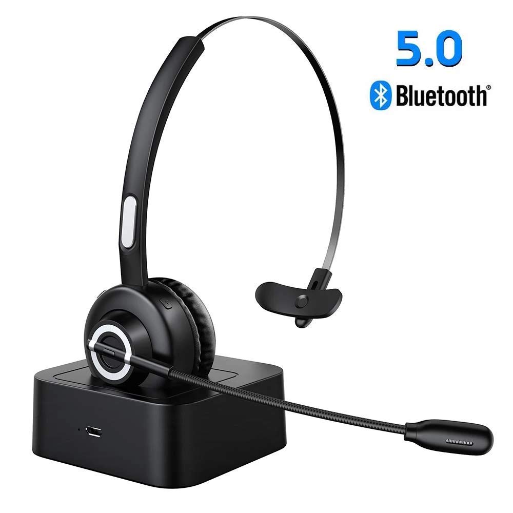 Esolom Casque Bluetooth avec Micro sans Fil,Casque avec Base de Charge,Casque Téléphonique,Casque PC Professionnel pour Annulation de Bruit,Mains Libres,Call Center,Conducteur de Camion